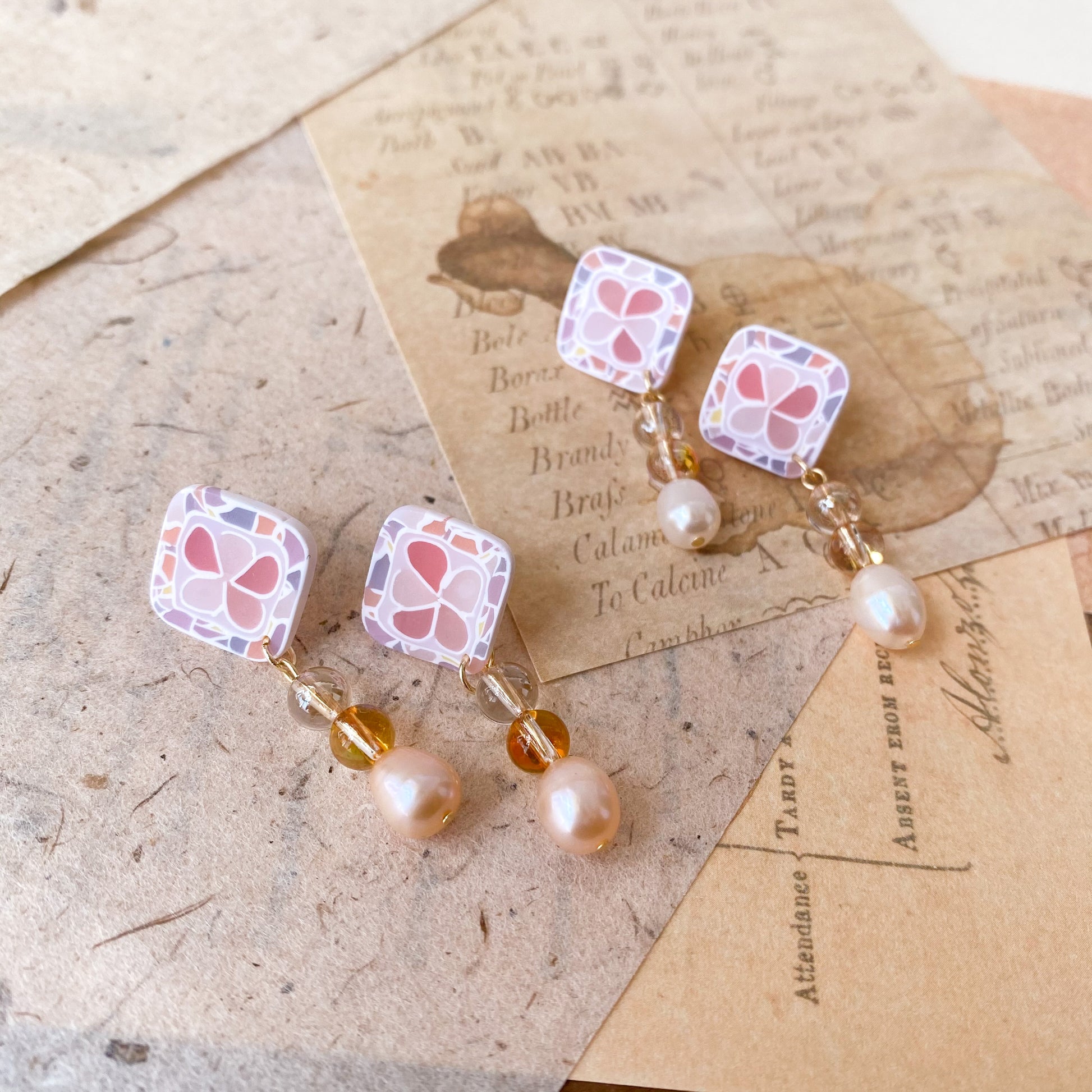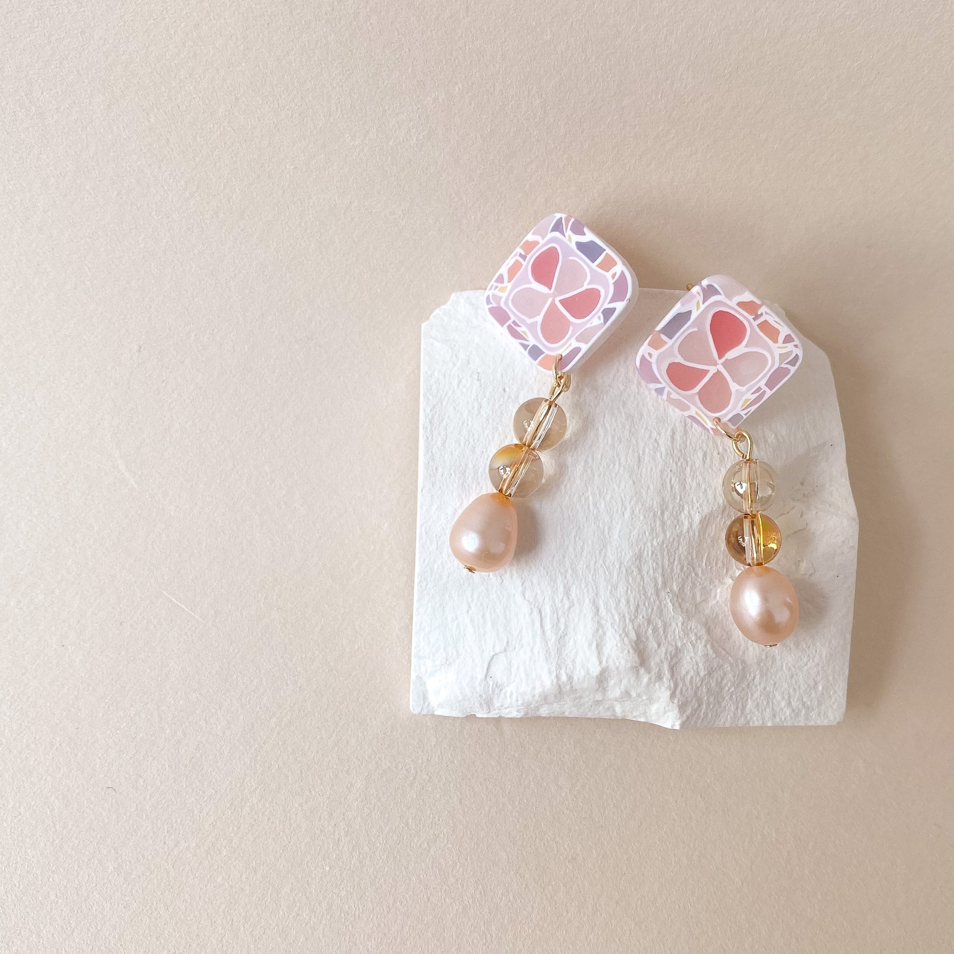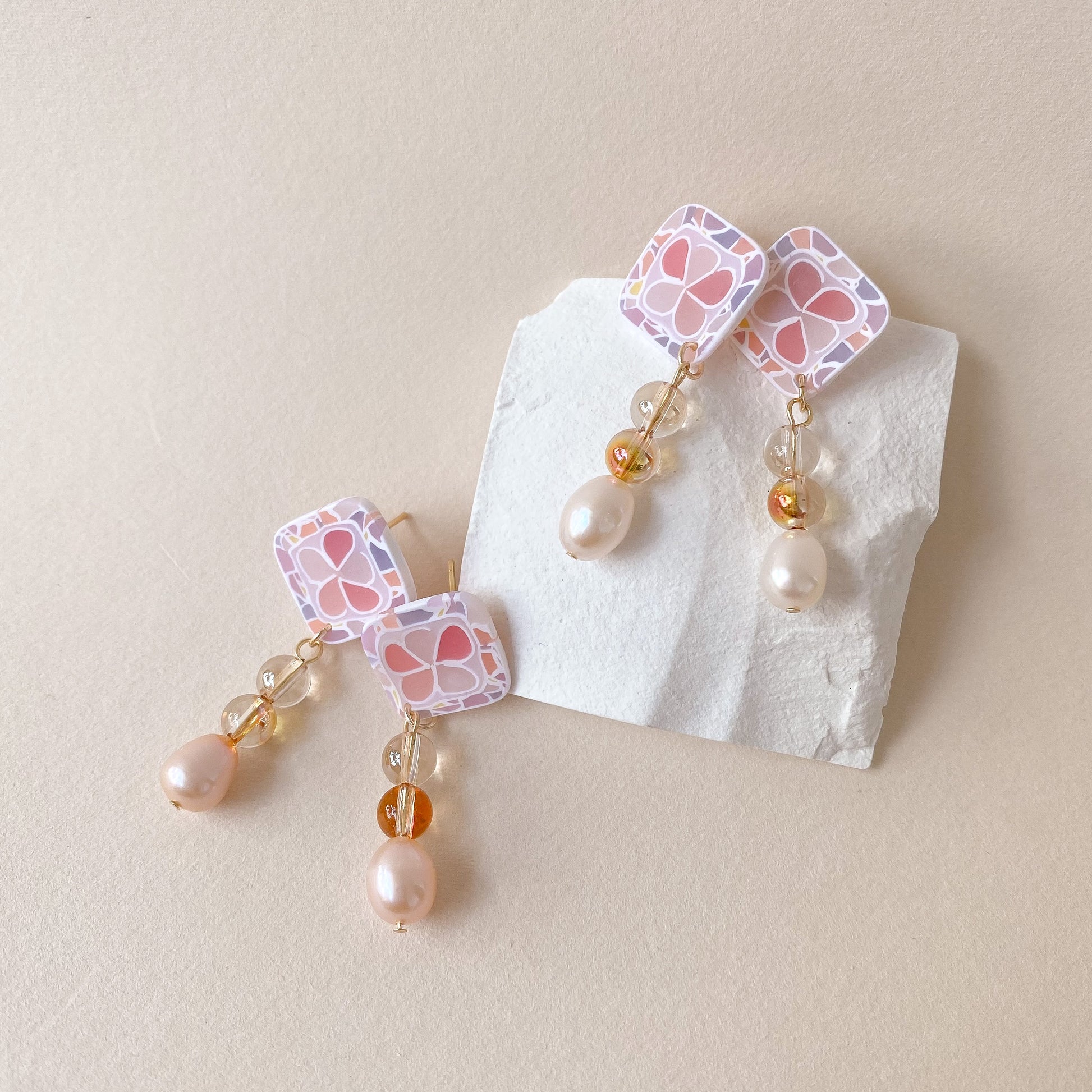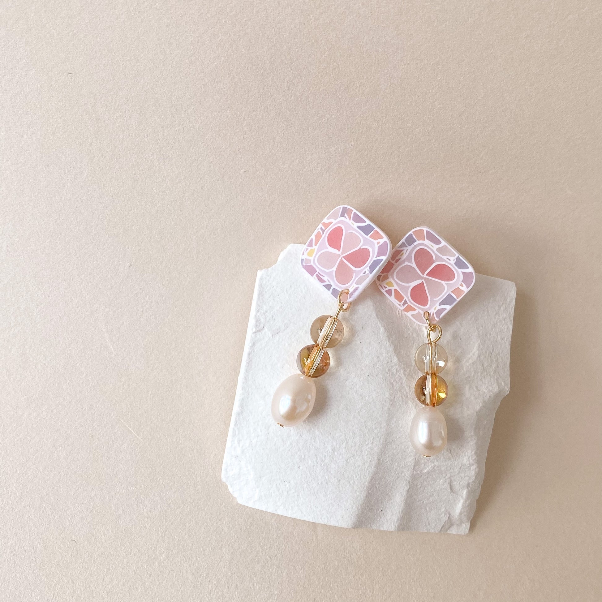 ⋆ Made from polymer clay, Swarovski crystal beads, genuine freshwater pearl and 14K gold-plated studs