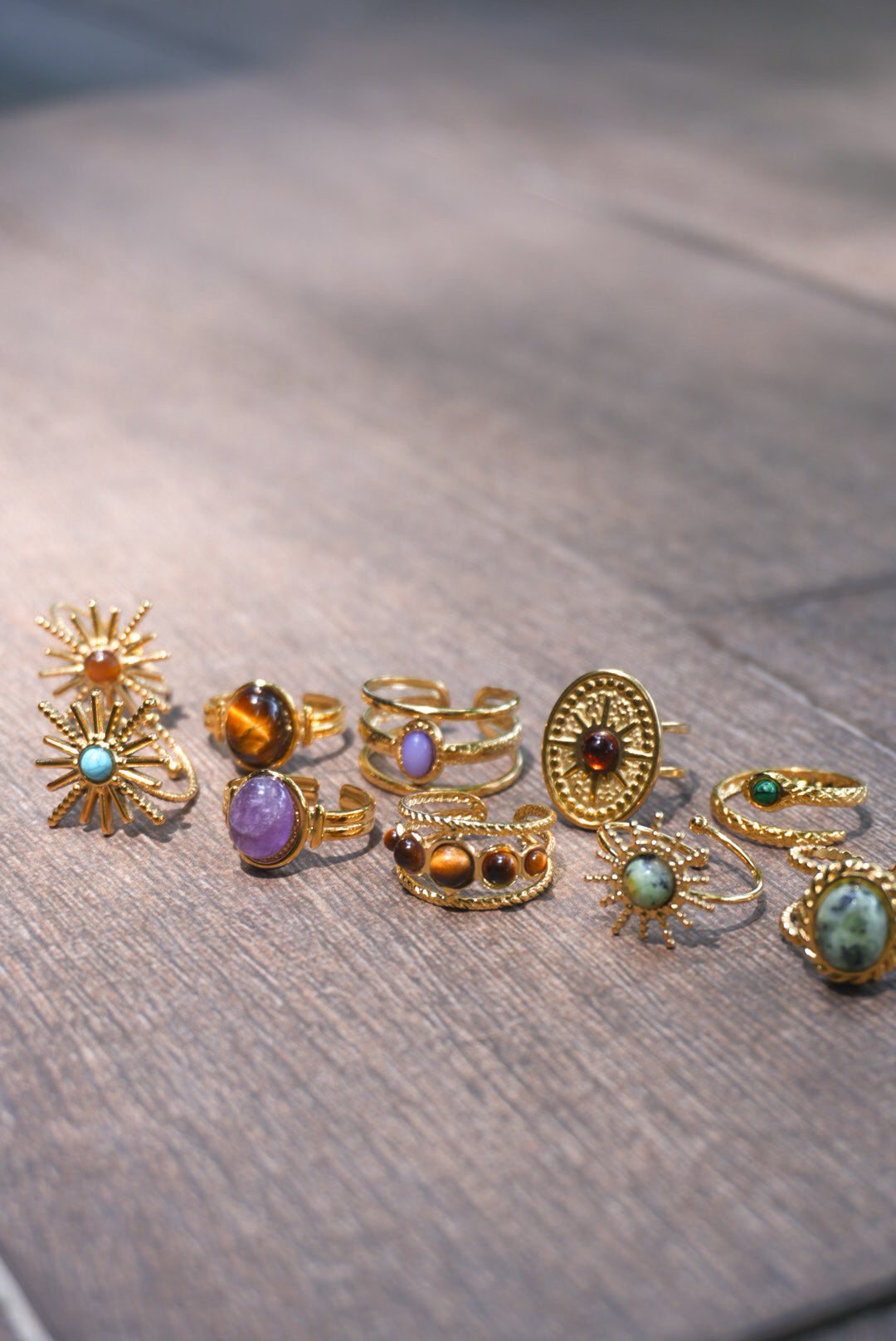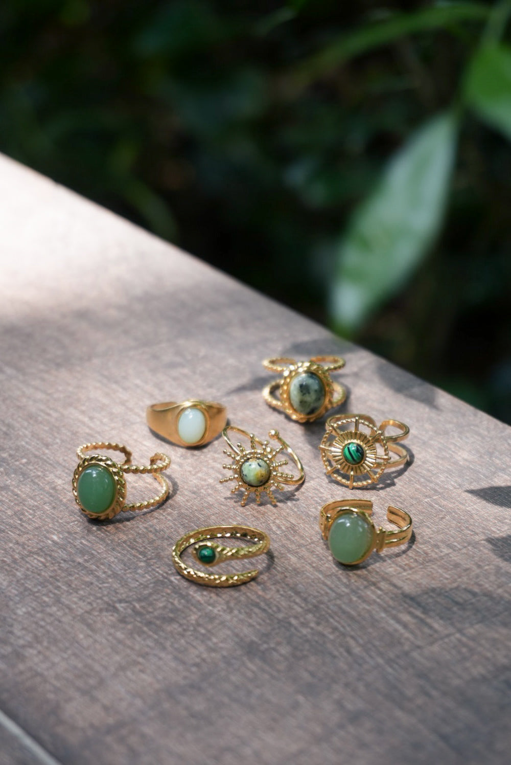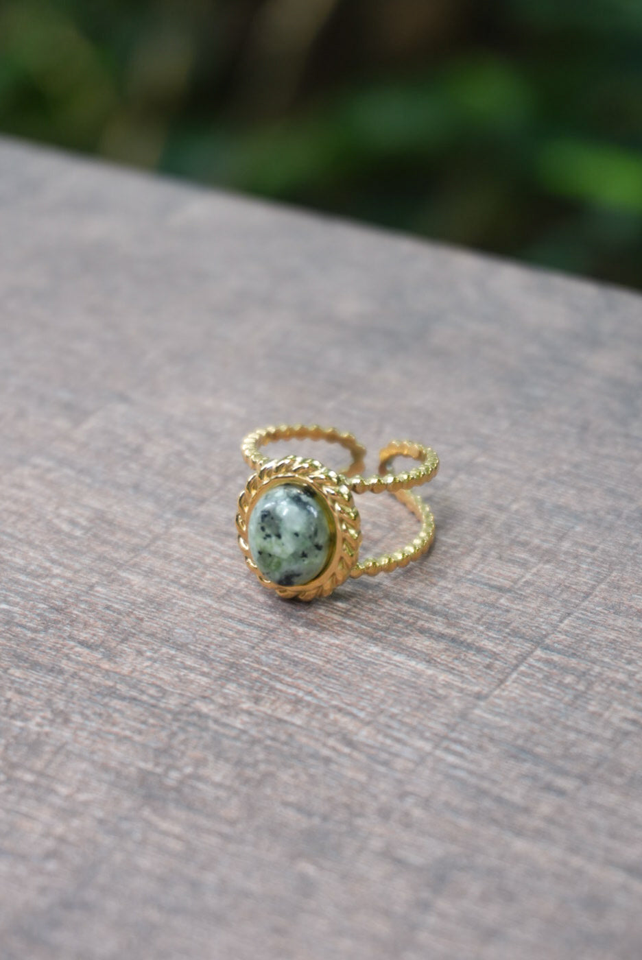 Natural gemstone set in stainless steel with a refined 18k gold plating