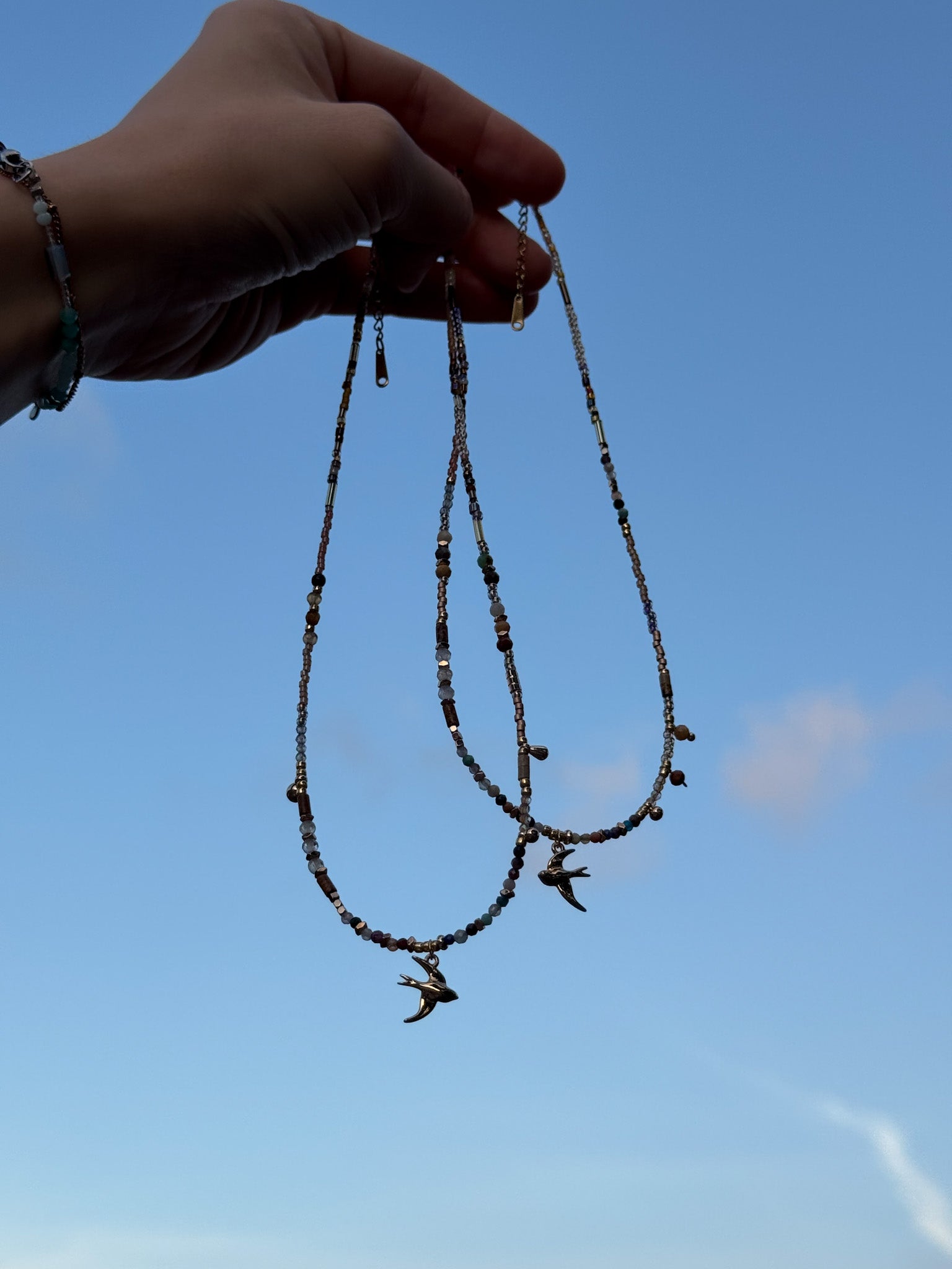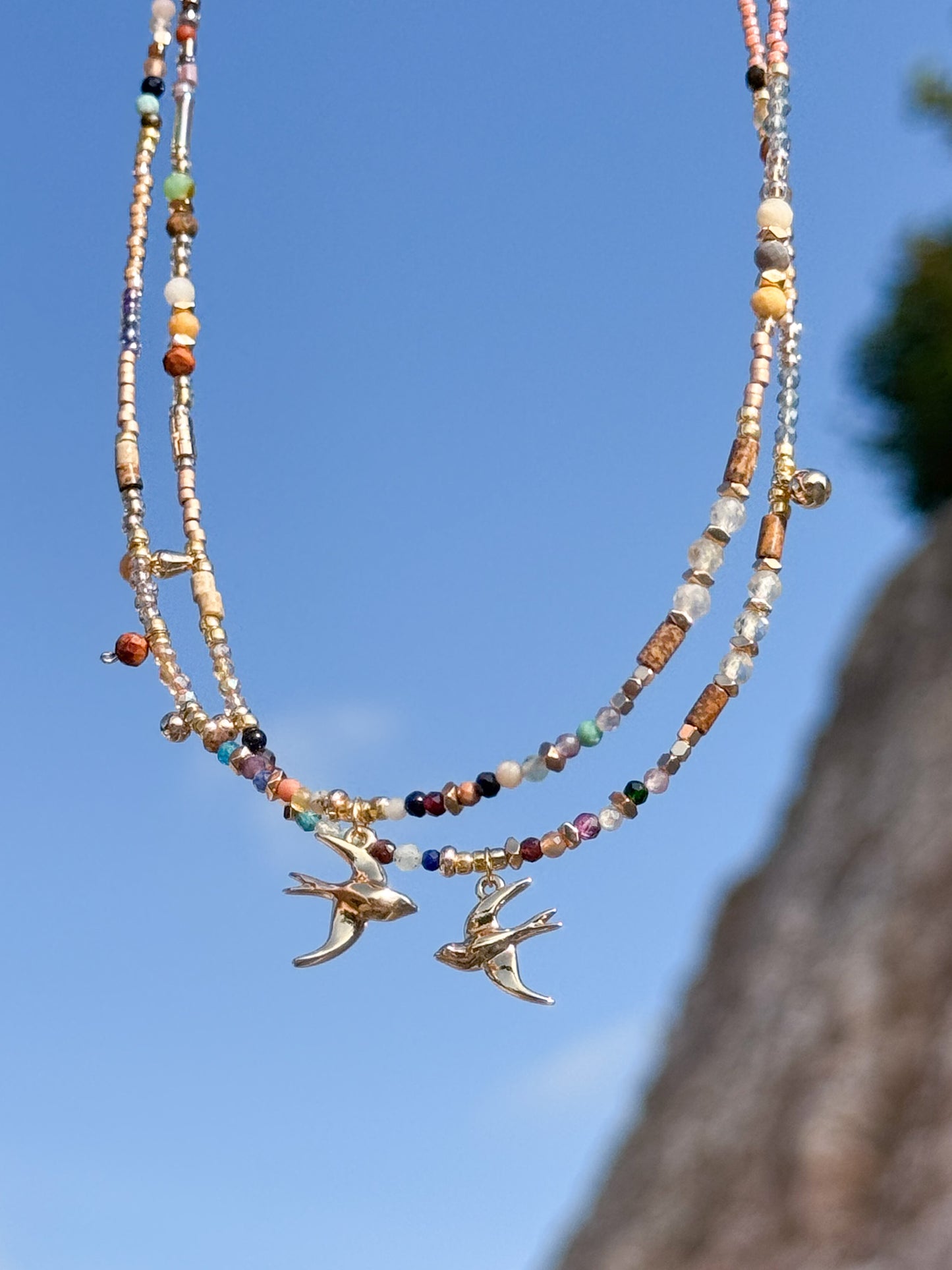Materials: Various natural gemstone beads, premium Japanese glass beads, and 18k gold-plated/stainless steel parts.