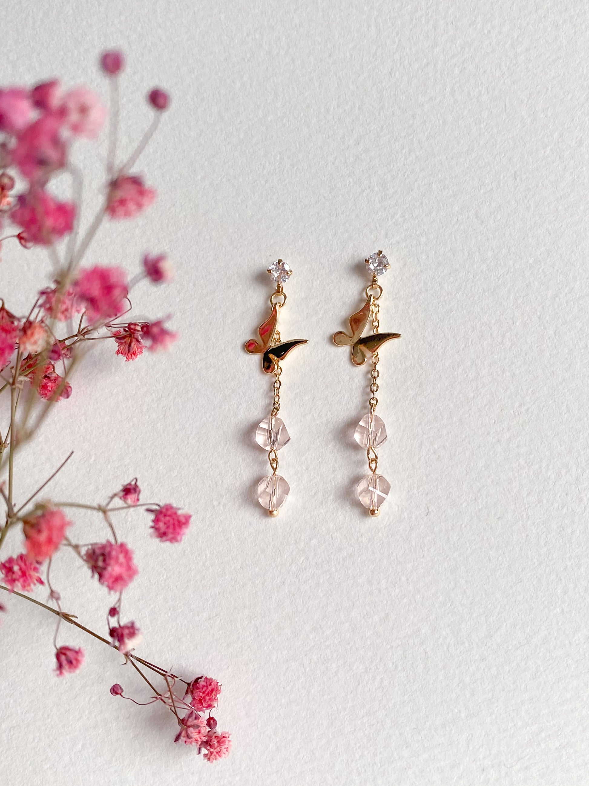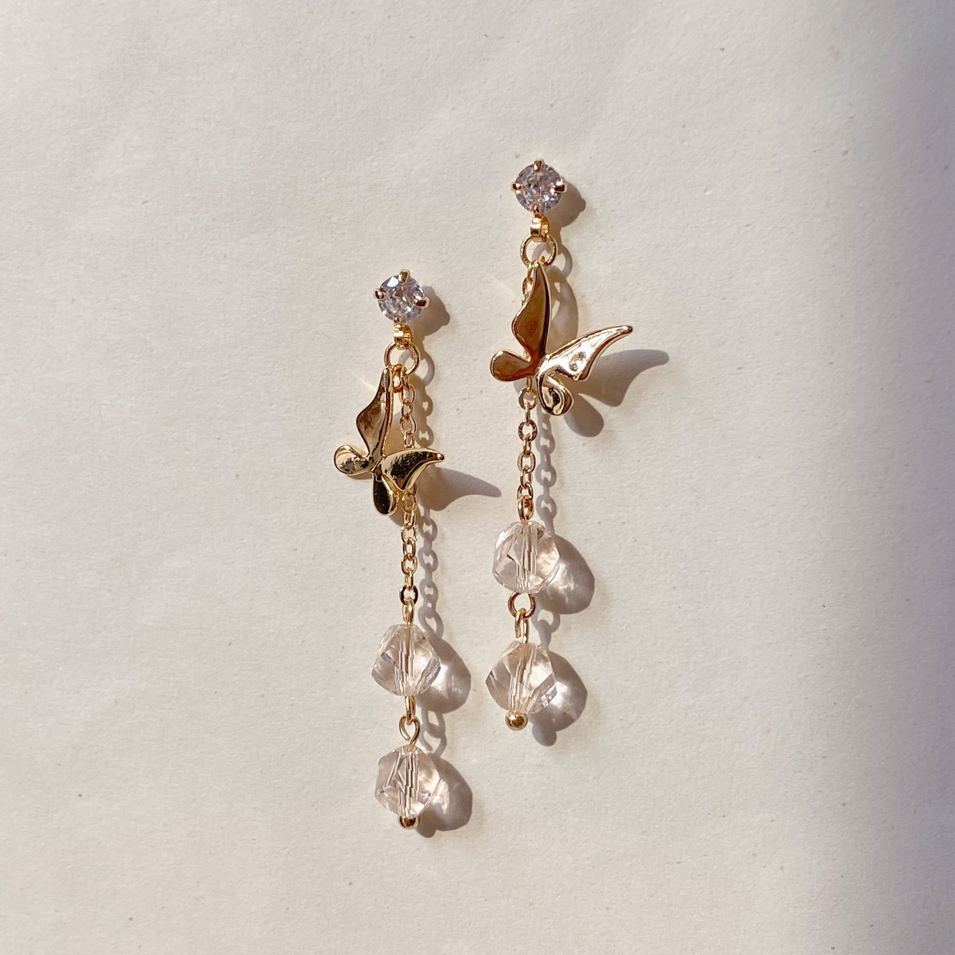⋆ Made from Swarovski crystals, 14K gold-plated butterfly charm and sterling silver studs