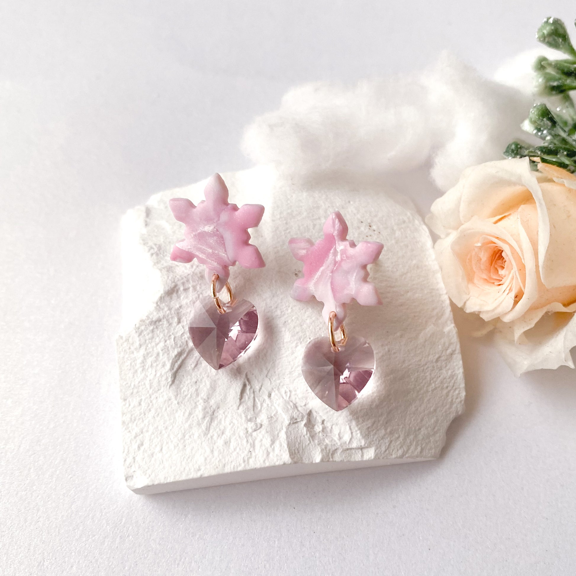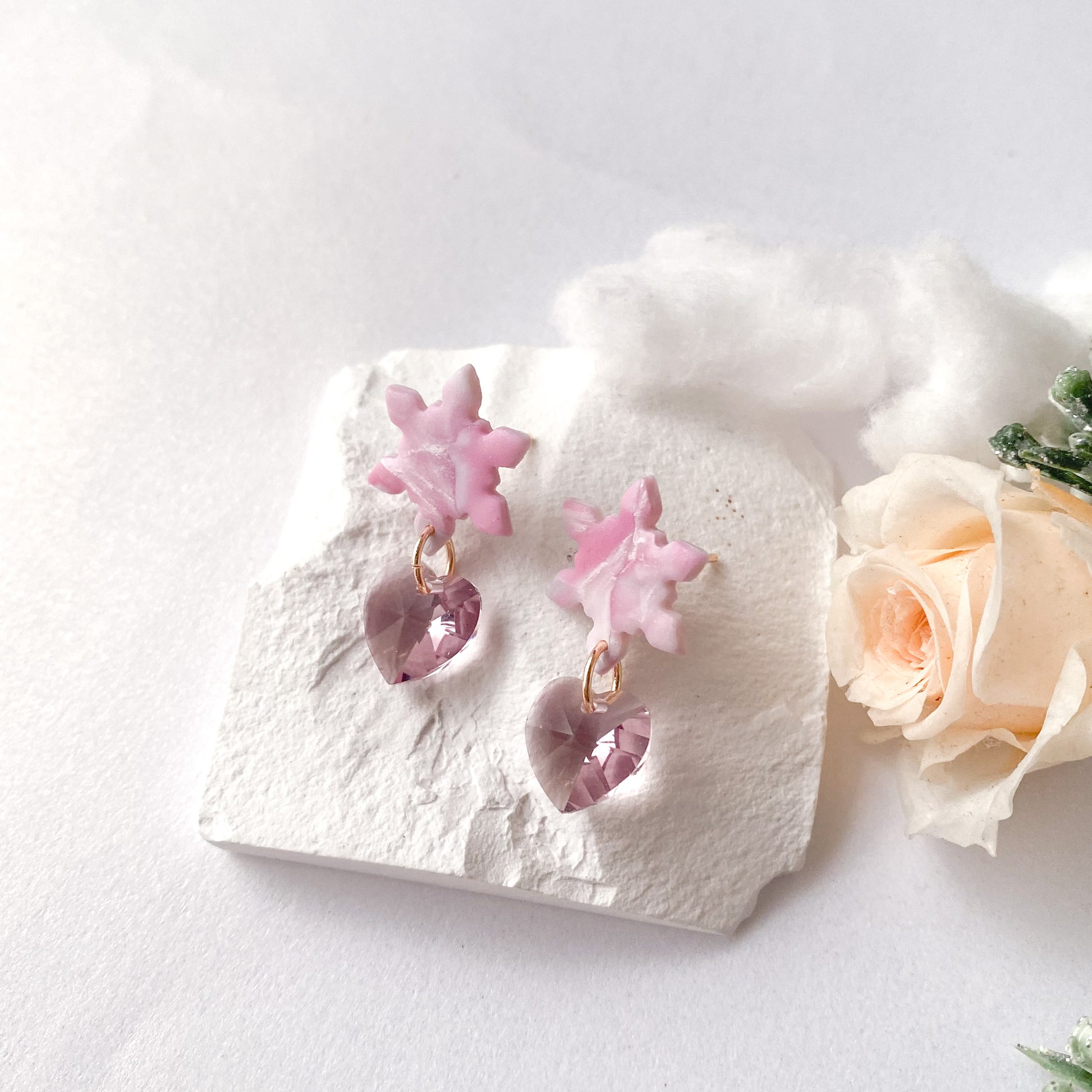 ⋆ Made from polymer clay, Swarovski heart crystal and 14K gold-plated studs